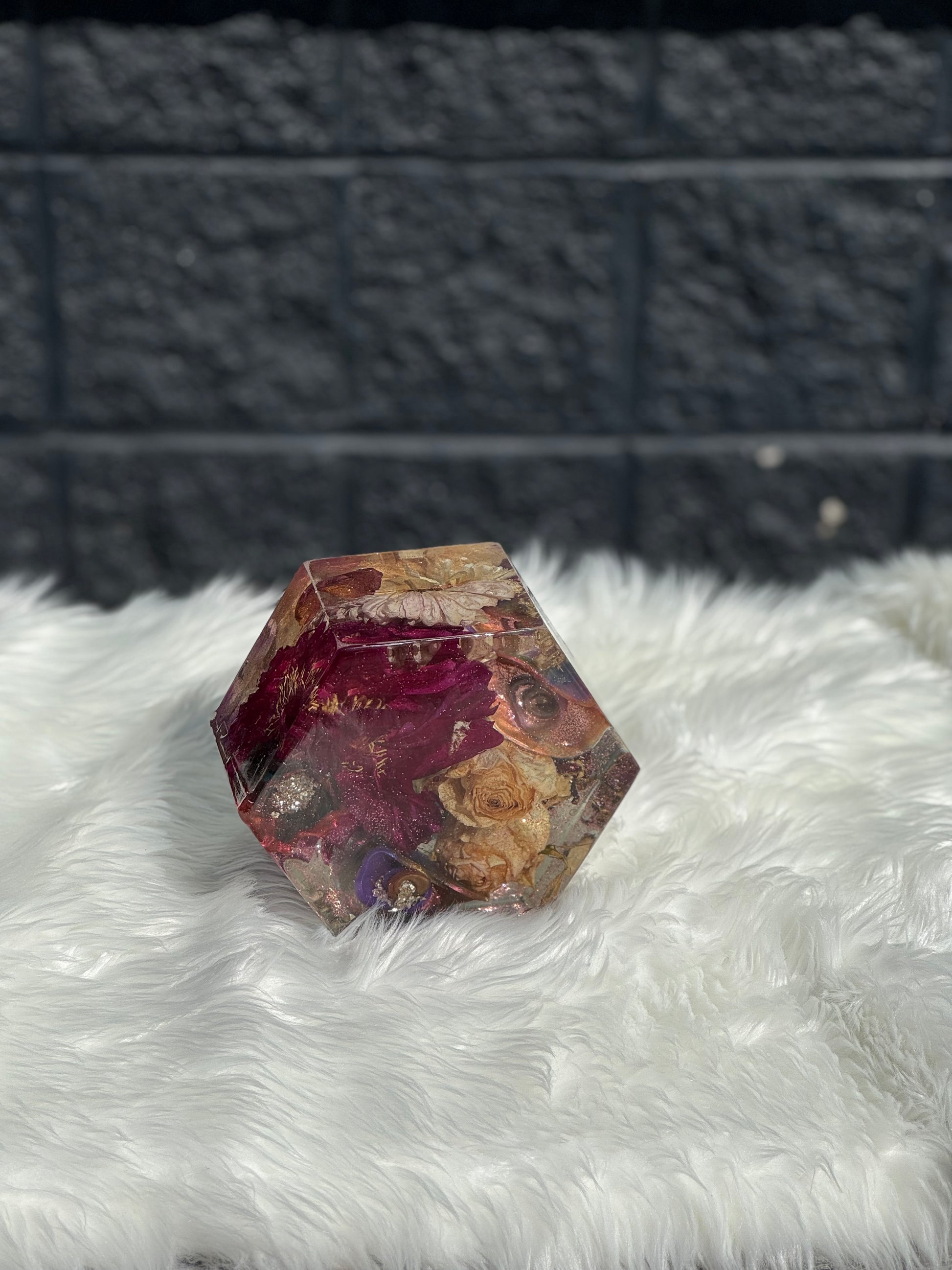 ✨ Floral Preservation – Bouquets, boutonnieres, or petals encased in resin for timeless keepsakes (Please Note: flowers SHOULD NOT be frozen. The preservation process can take up to three months)